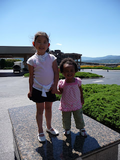 On our second day of travel on the way home we stopped in beautiful Coeur d'Alene, Idaho for lunch at Beverly's (great calamari and lobster bisque!) and to stretch our legs a bit. Even on our last day the girls were still smiling. Amazing!