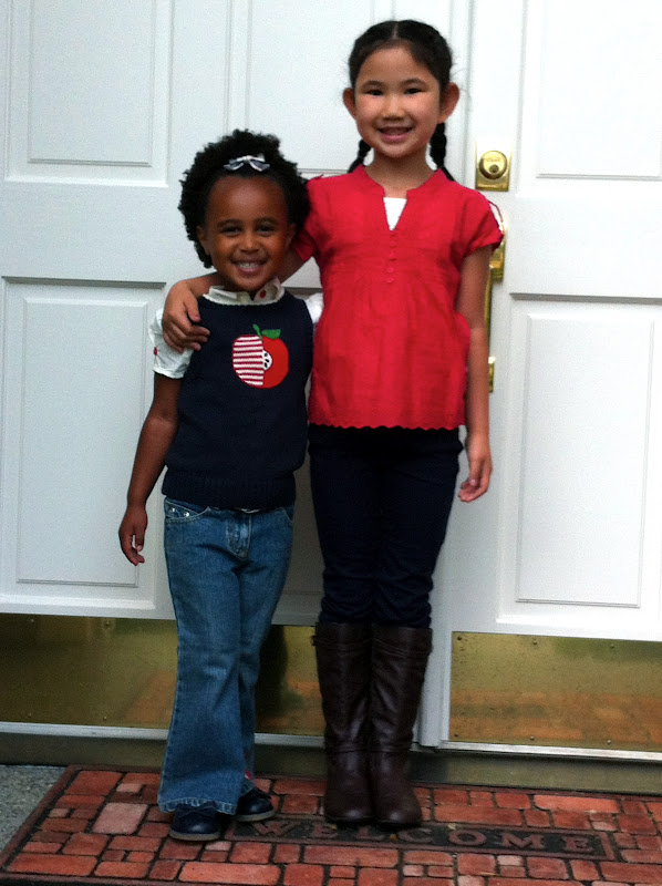 Maddy's first day of school! She needed her big sister to be in the picture.